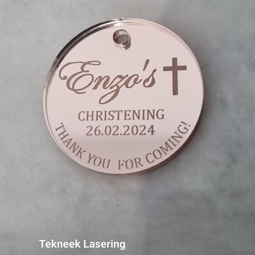 Make your Christening or Baptism event even more memorable with our personalised acrylic tags. These beautifully engraved tags are the perfect way to show appreciation to your guests. Whether used on gifts, favours or Bomboniere, Christening baptism acrylic tags add both meaning and elegance.